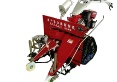 苧麻收割割捆機的切割輸送機構設置在前部,切割輸送機構由上至下依次設置鏈條式輸送機構和切割機構,鏈條式輸送機構和切割機構的前方設置用于引導苧麻的分禾機構,苧麻被引導至割捆機從根部切斷,然后被切斷的苧麻被鏈條式輸送機構輸送向側邊,由出口端設置的打捆機構進行打捆然后輸出。
